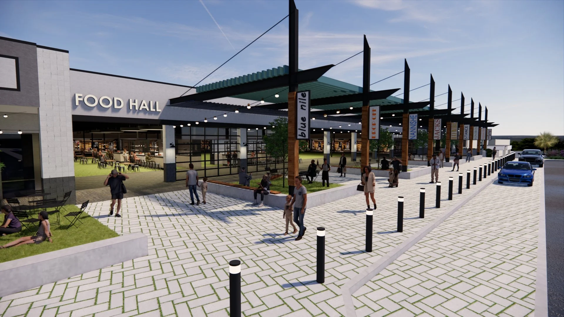 The renovated center will remain covered from the rain and sun. New skylights and open air entrances and patios will allow natural cooling of the common areas.